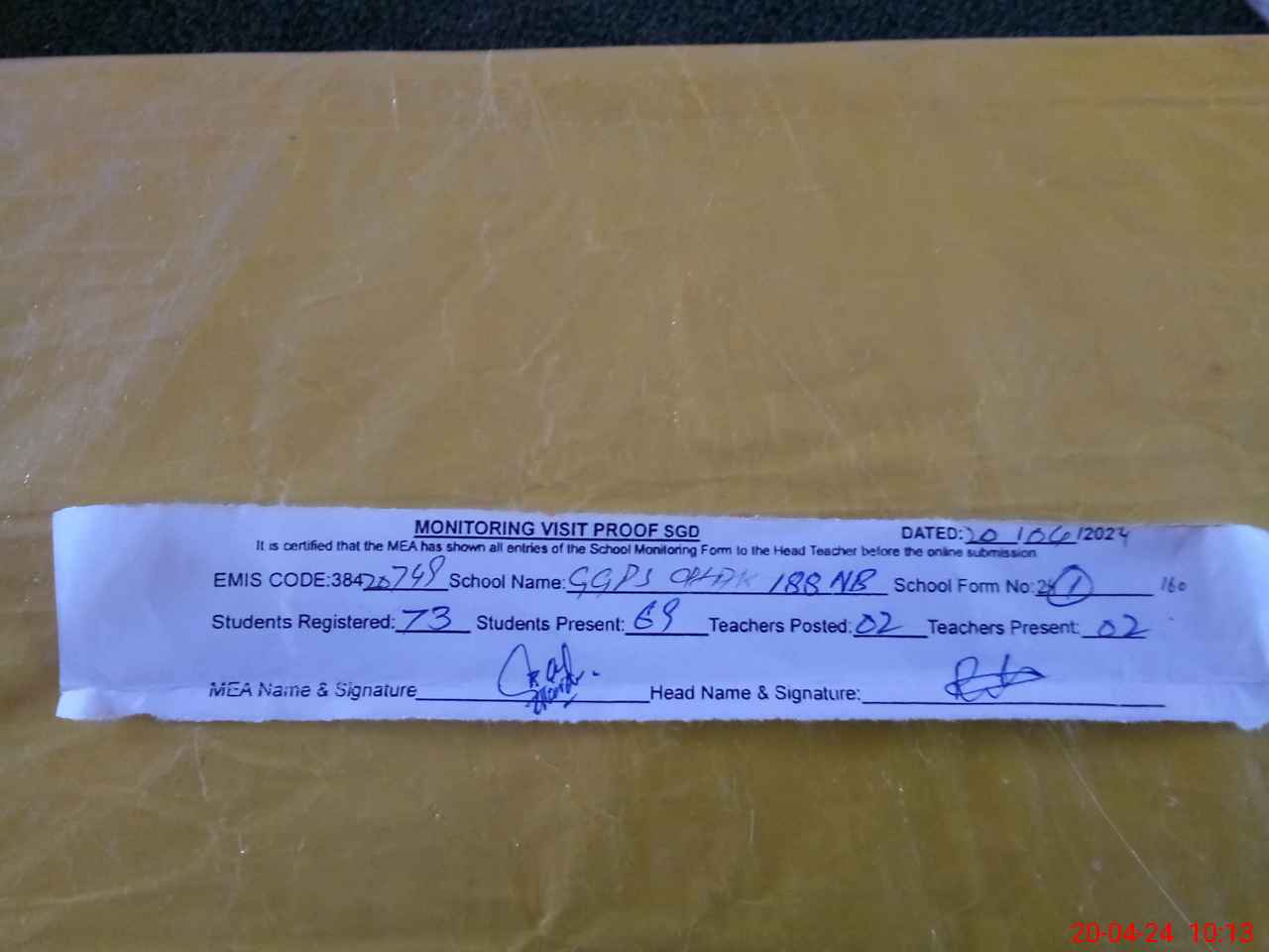 | EMIS Code: 38420749 | Name of School: GGPS CHAK NO.188 NB | |||