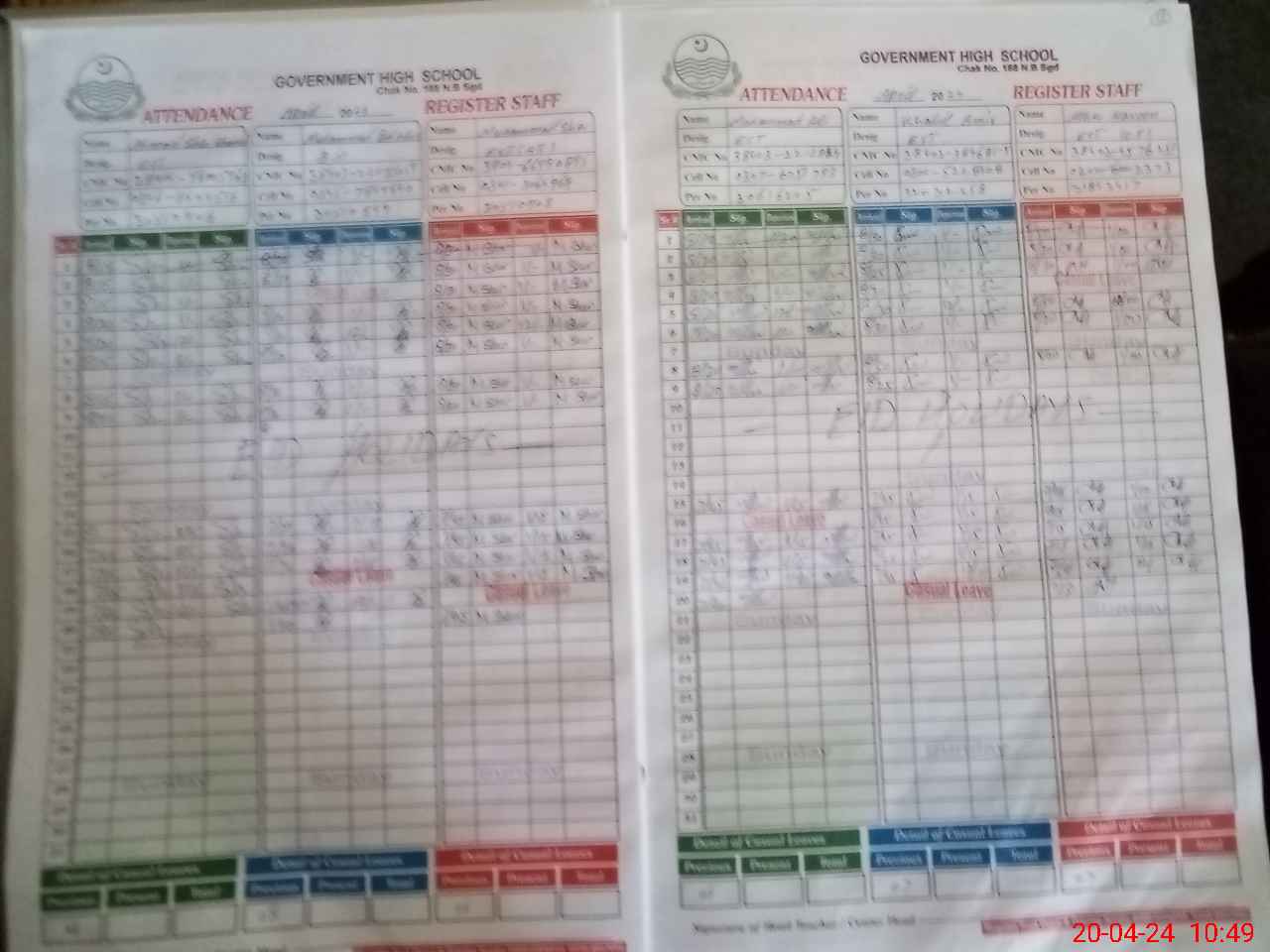 | CNIC | Full Name | Designation | R/C | Absence During Last Calender Month |