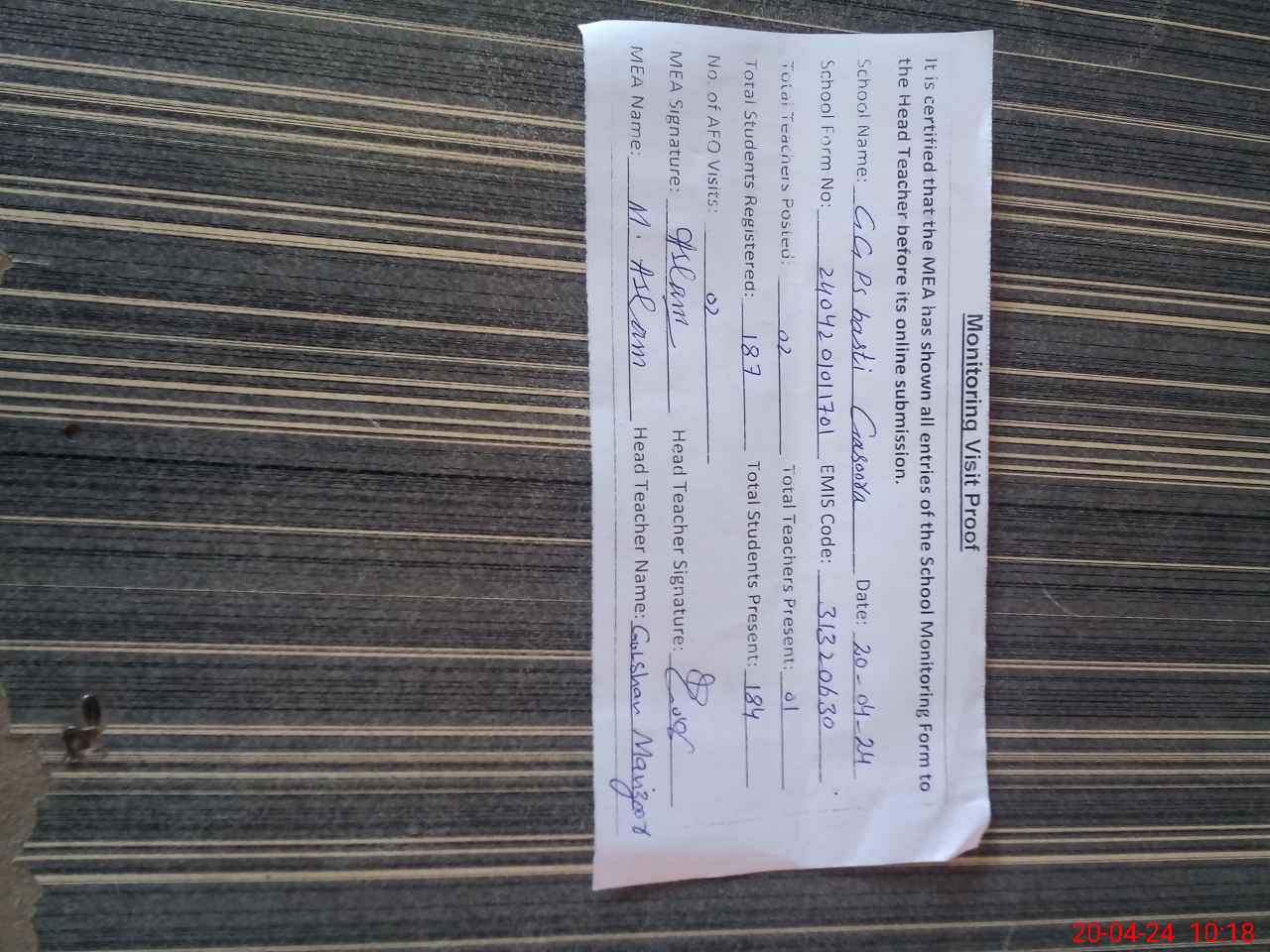 | EMIS Code: 31320630 | Name of School: GGPS BASTI GHASOORA | |||