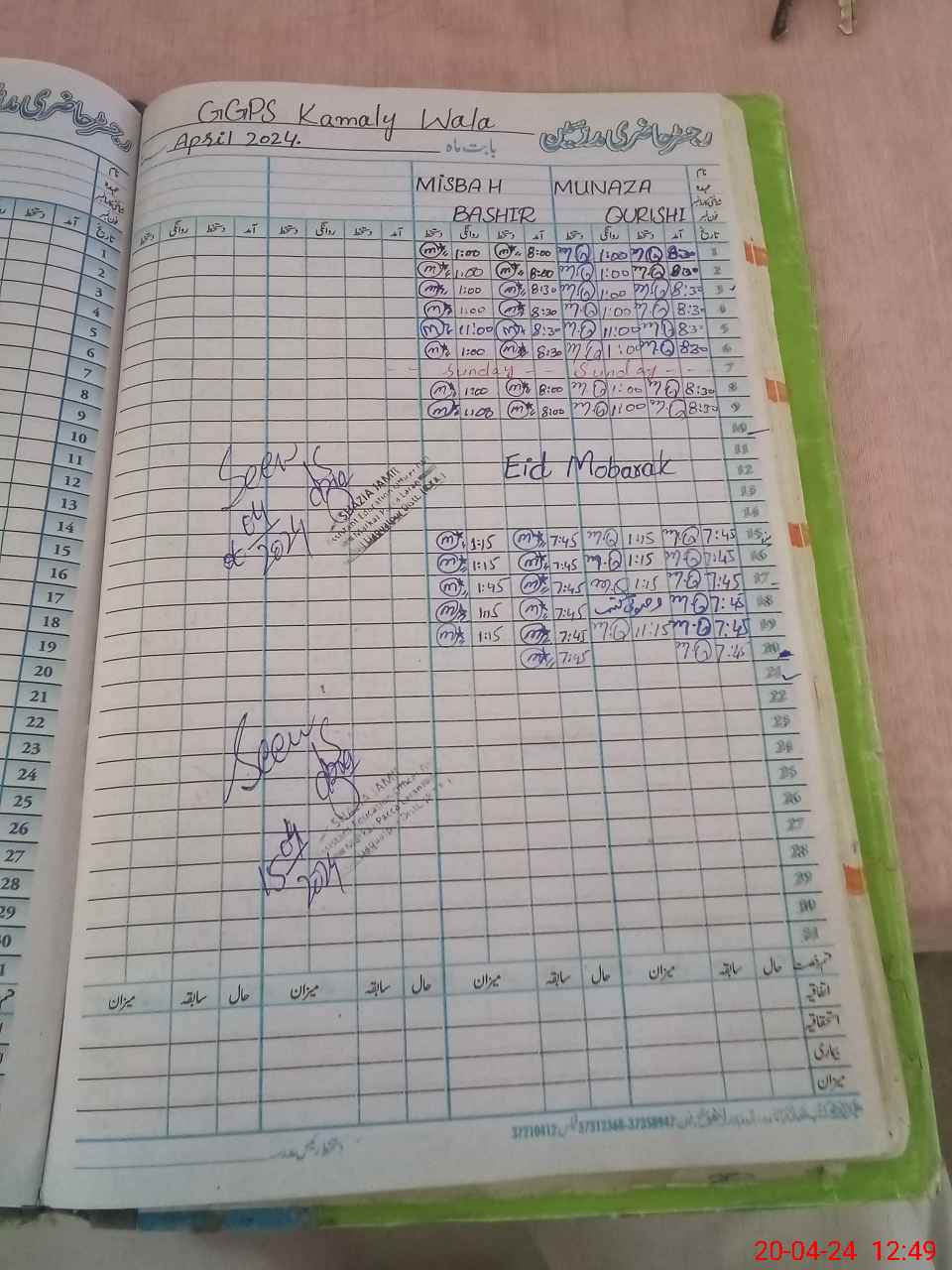 | Name: MU**** NO**** QU**** Designation: (School Headmaster's/Headmistress's) PST/PTC/JV Phone/Cell Number: 03**** |