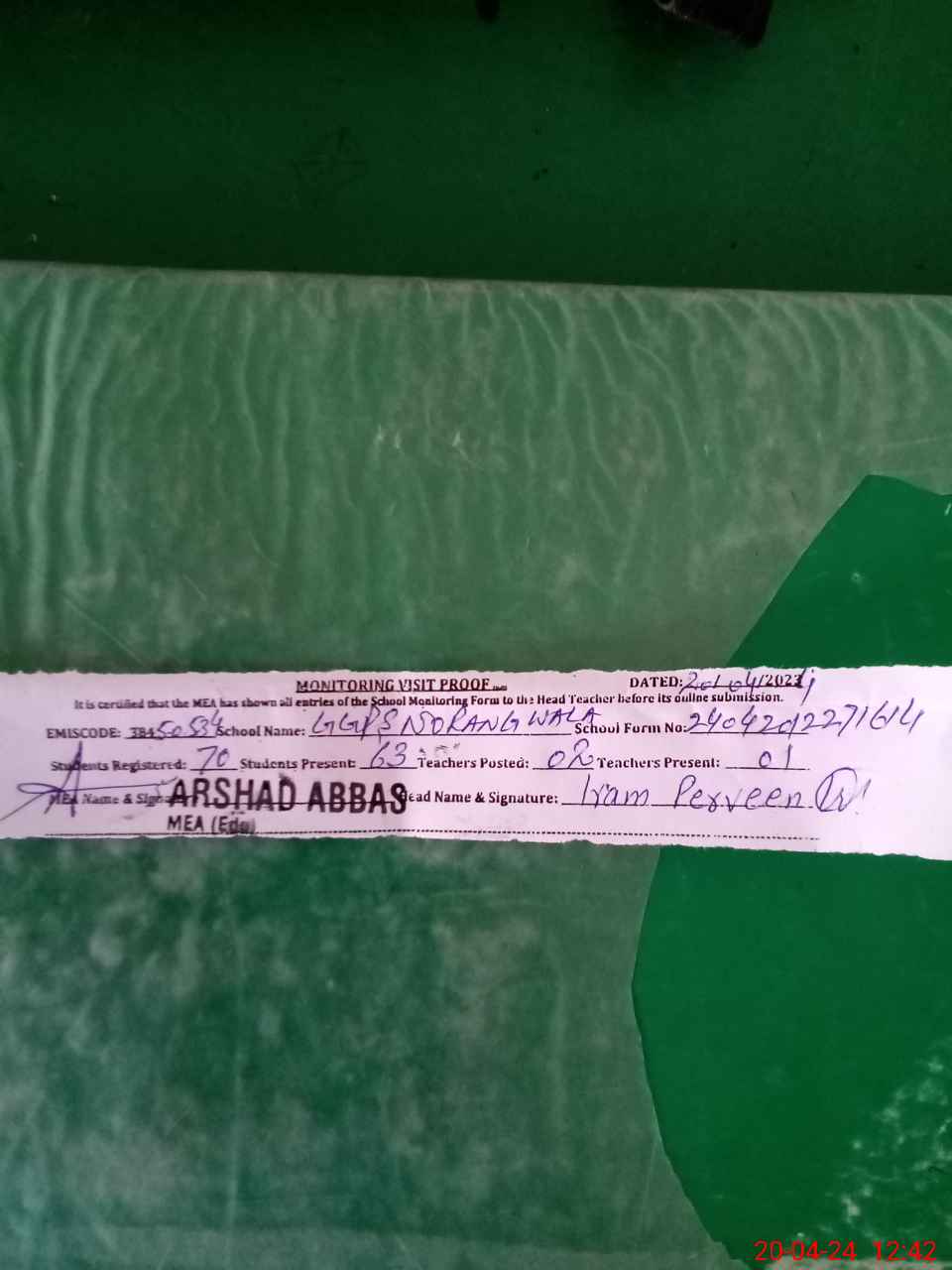 | EMIS Code: 38450534 | Name of School: GGPS NORANG WALA | |||