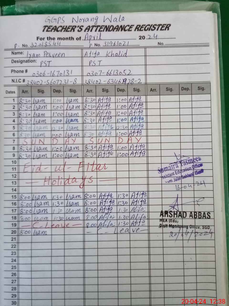 | 38**** | Af**** Kh**** | PST | Regular | 30 | 0 | 0 | 30 | 0 | 0 | 0 | 0 | 0 | Casual |