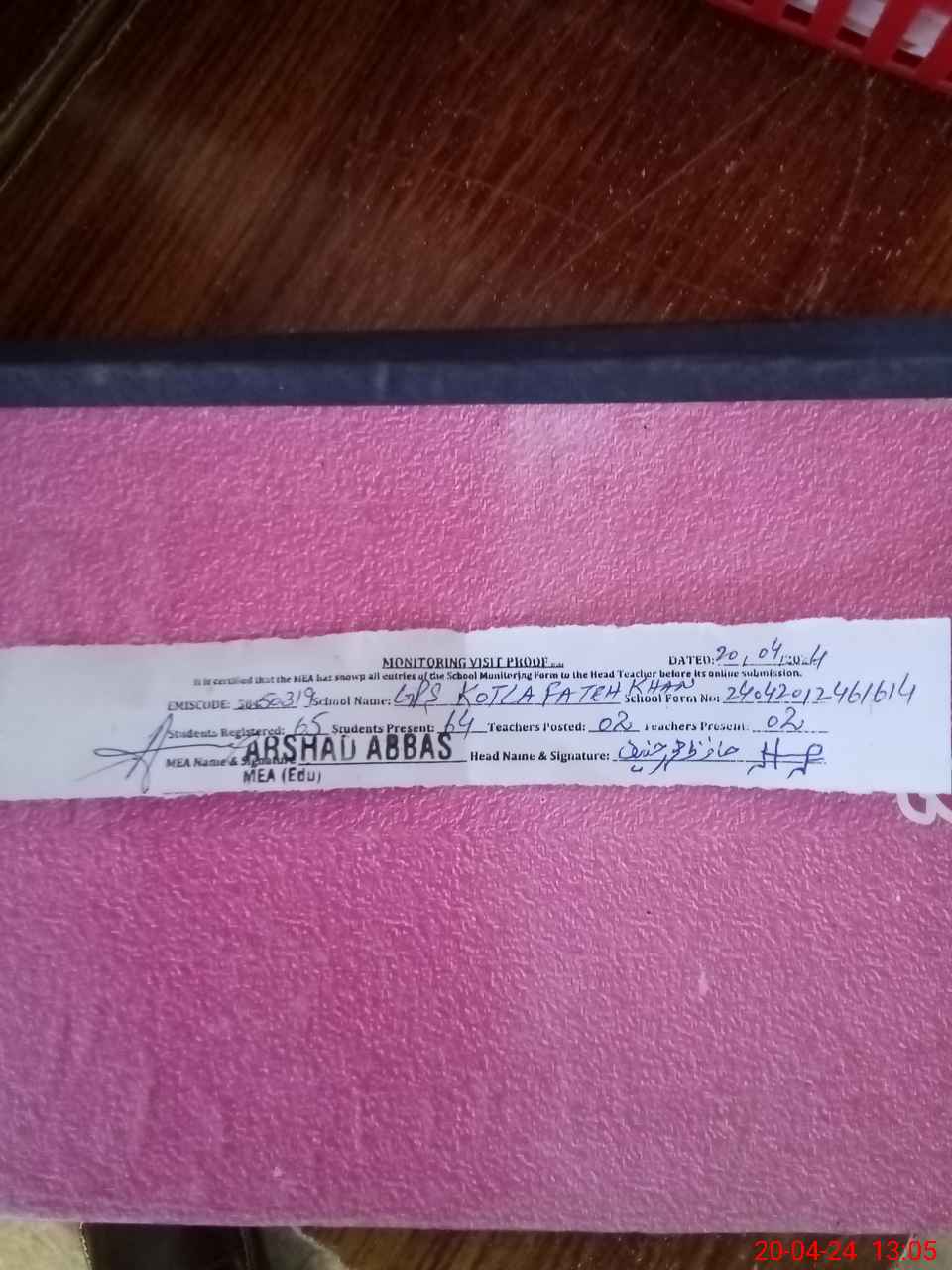 | EMIS Code: 38450319 | Name of School: GPS KOTLA FATEH KHAN | |||