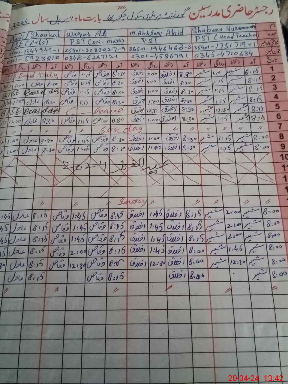 | Name: SH**** HU**** Designation: (School Headmaster's/Headmistress's) PST Phone/Cell Number: 03**** |