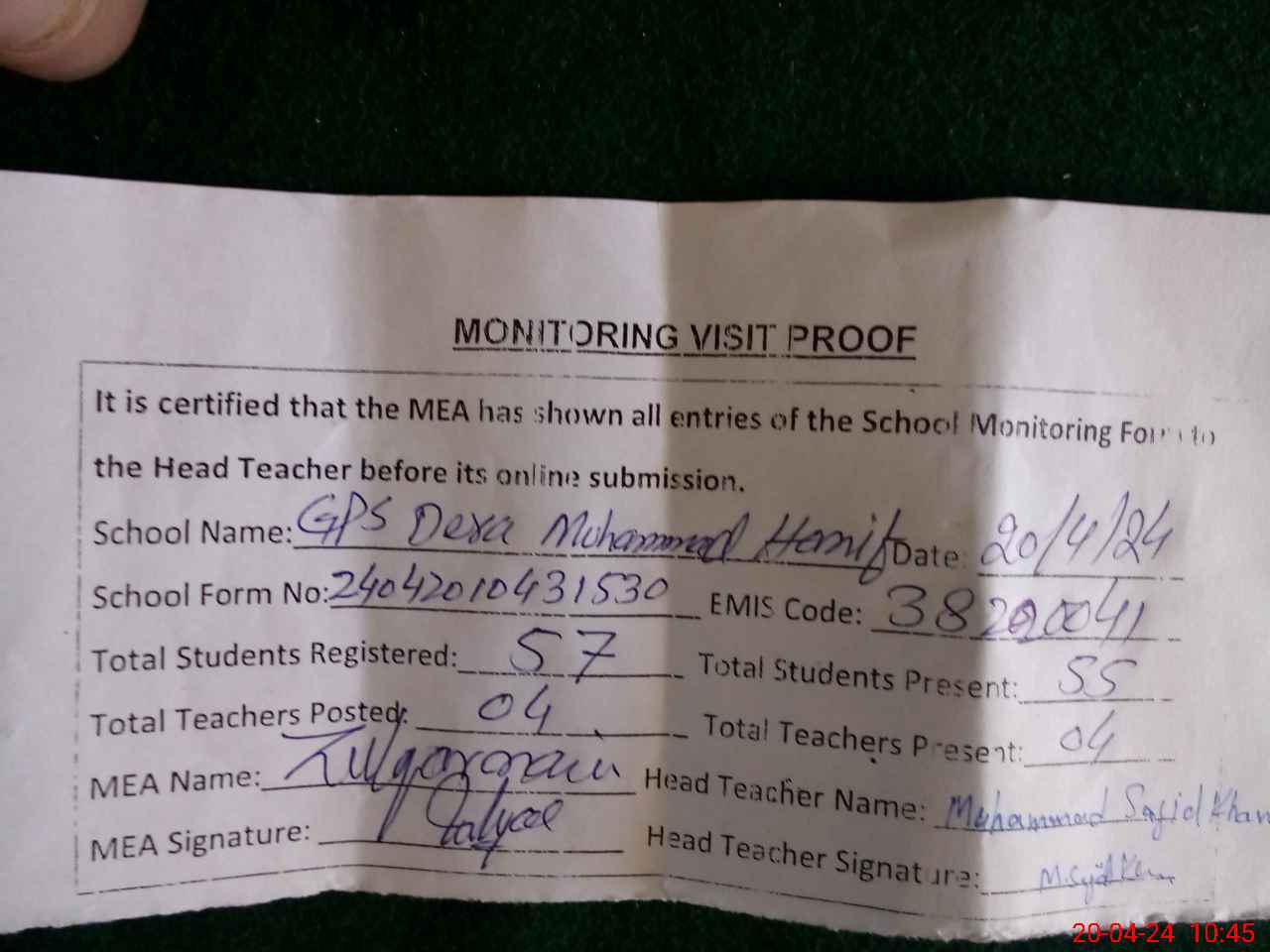 | EMIS Code: 38220041 | Name of School: GPS DERA MUHAMMAD HANIF | |||