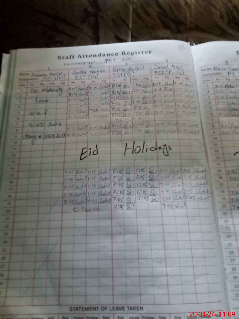 | 37**** | Se**** Al**** | PST | Regular | 0 | 0 | 0 | 0 | 0 | 0 | 0 | 0 | 0 | Maternity |