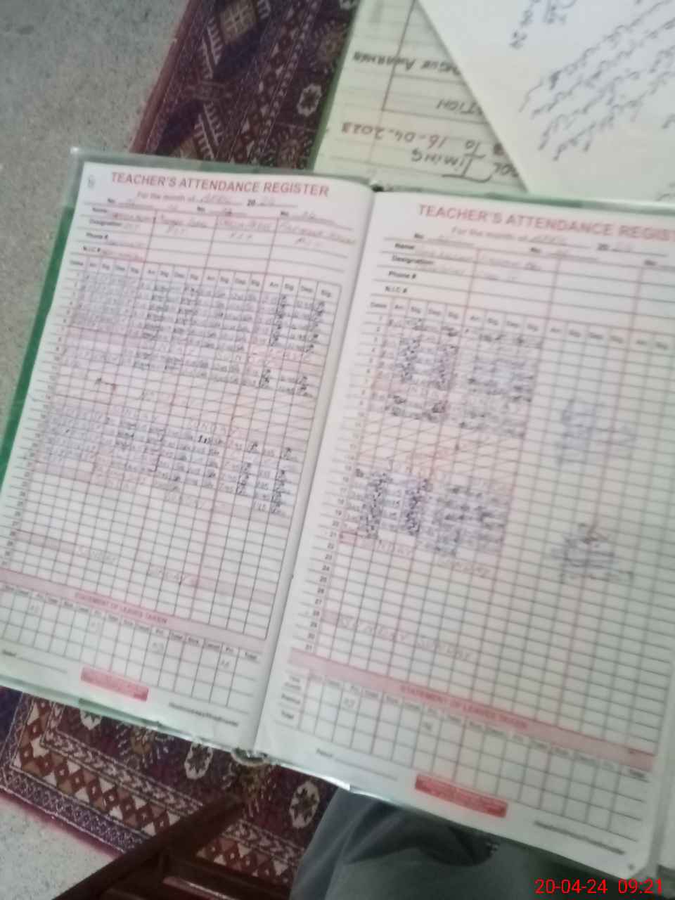 | CNIC | Full Name | Designation | R/C | Absence During Last Calender Month |
