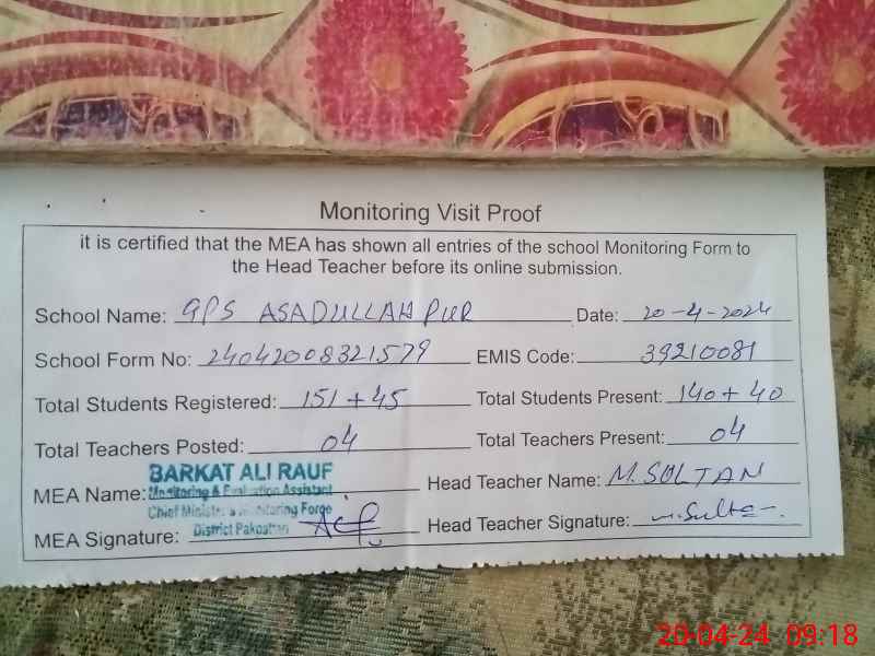 | EMIS Code: 39210081 | Name of School: GPS ASADULLAH PUR | |||