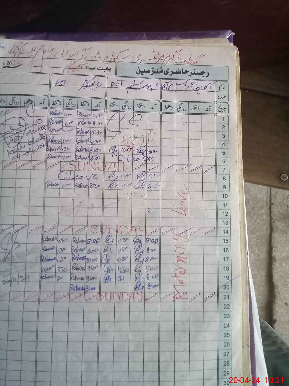 | 35**** | As**** Ab**** | PST | Regular | 31 | 0 | 0 | 31 | 0 | 0 | 0 | 0 | 0 | Maternity |