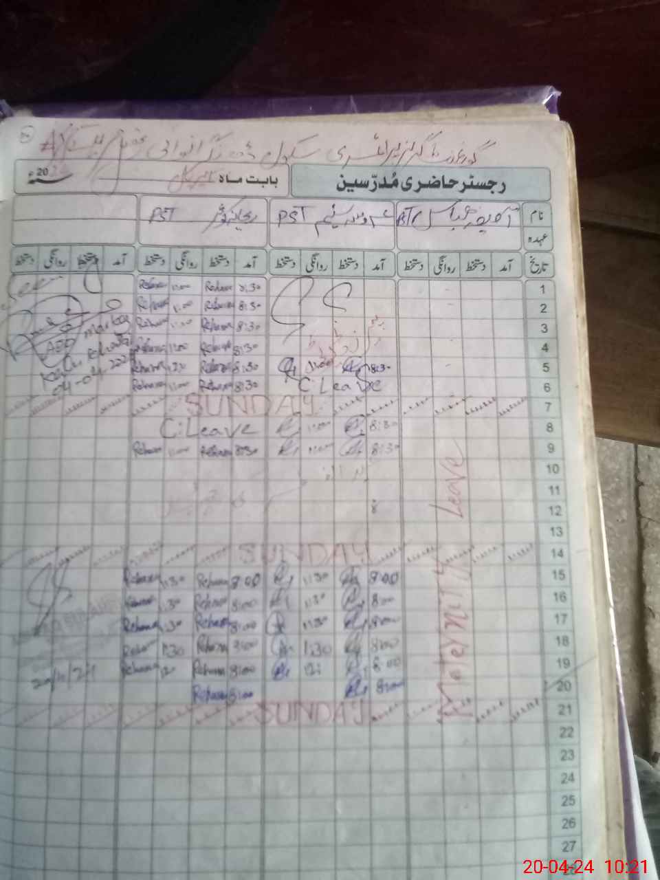 | Name: AS**** AB**** Designation: (School Headmaster's/Headmistress's) PST Phone/Cell Number: 03**** |