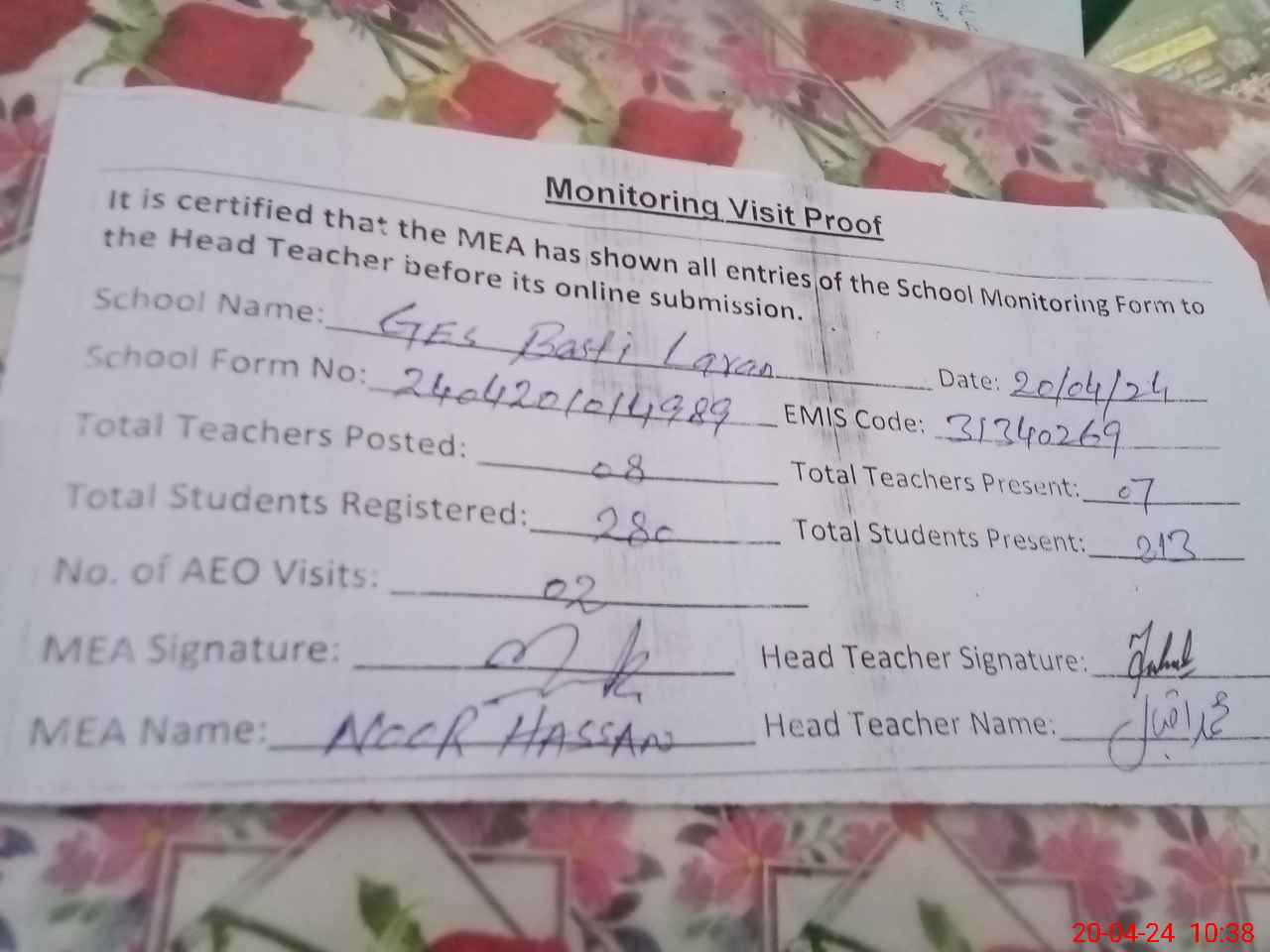 | EMIS Code: 31340269 | Name of School: GES BASTI LARAN | |||