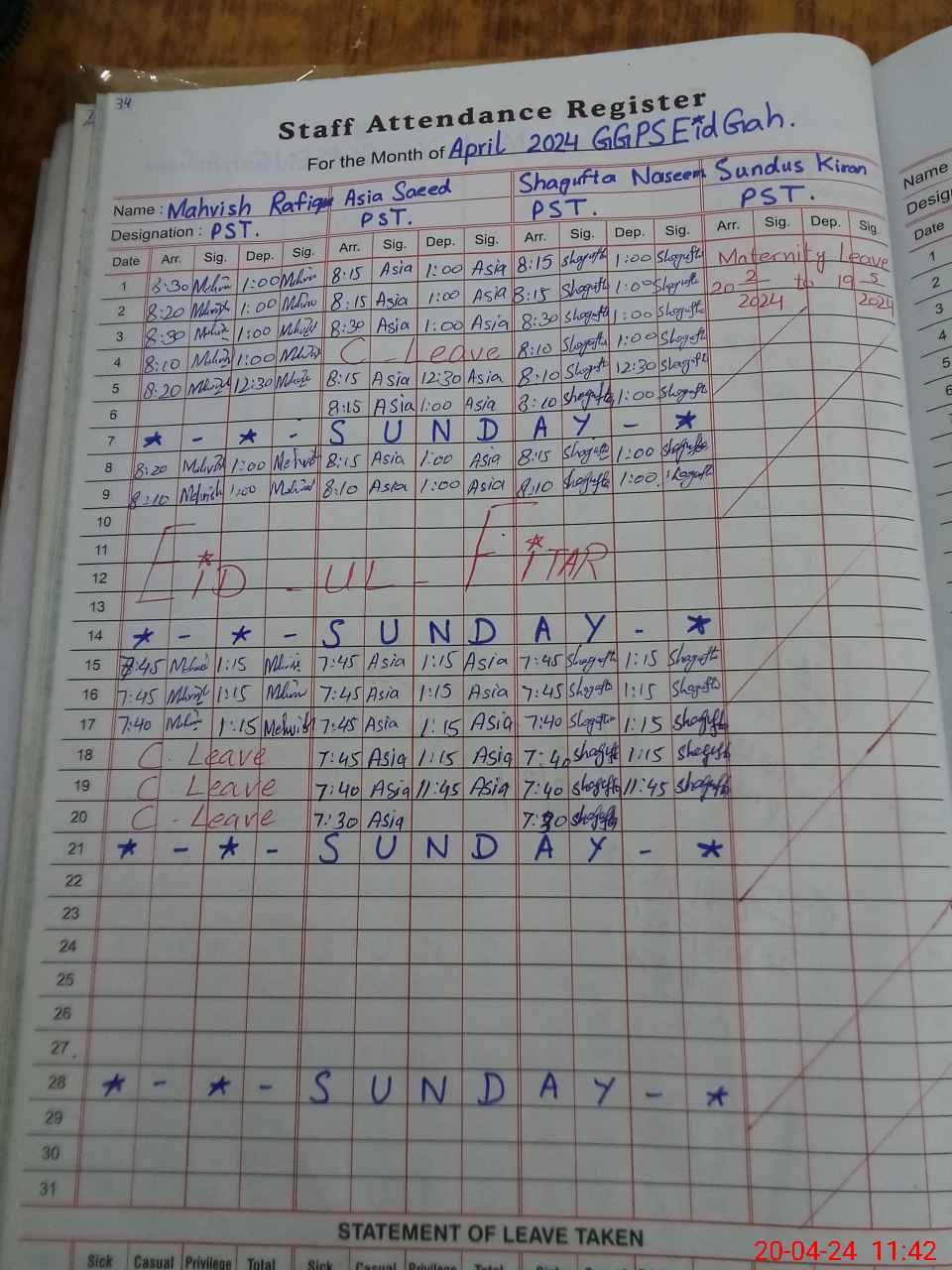 | 36**** | Su**** Ki**** | PST | Regular | 31 | 0 | 0 | 31 | 0 | 0 | 0 | 0 | 0 | Maternity |
