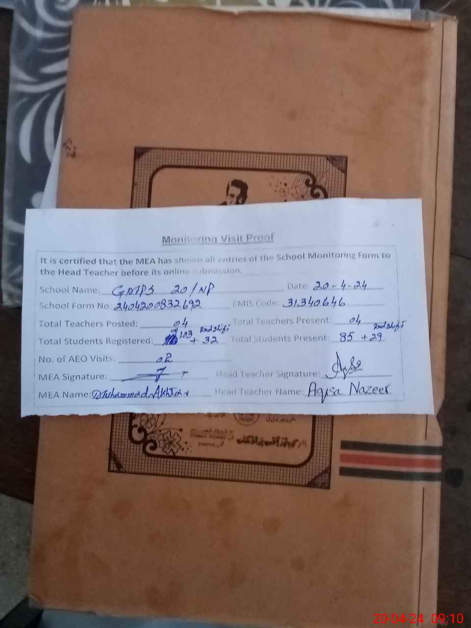 | EMIS Code: 31340646 | Name of School: GMPS CHAK NO.20/NP | |||