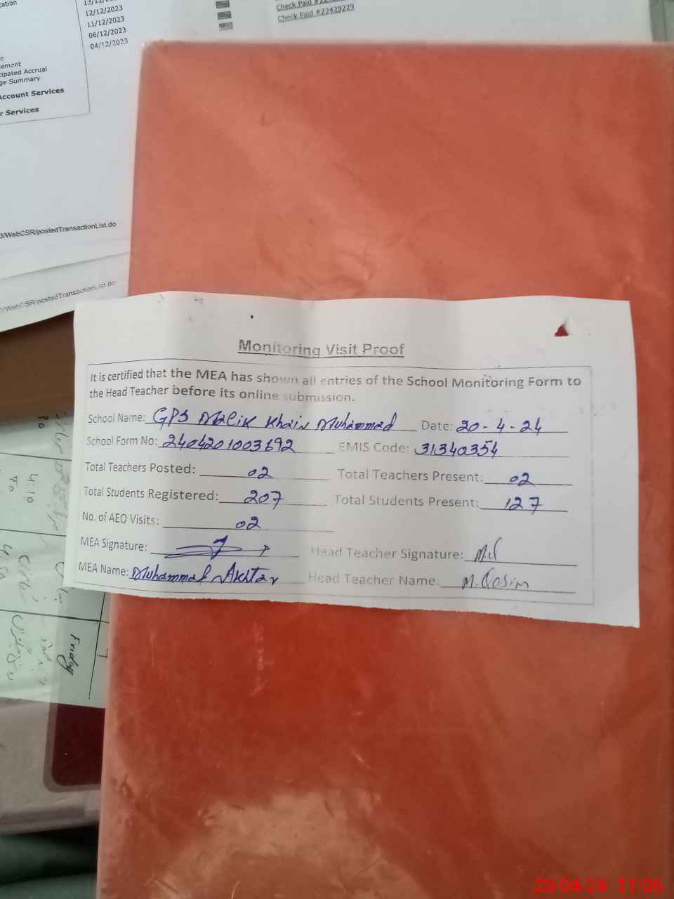 | EMIS Code: 31340354 | Name of School: GPS MALIK KHAIR MUHAMMAD | |||