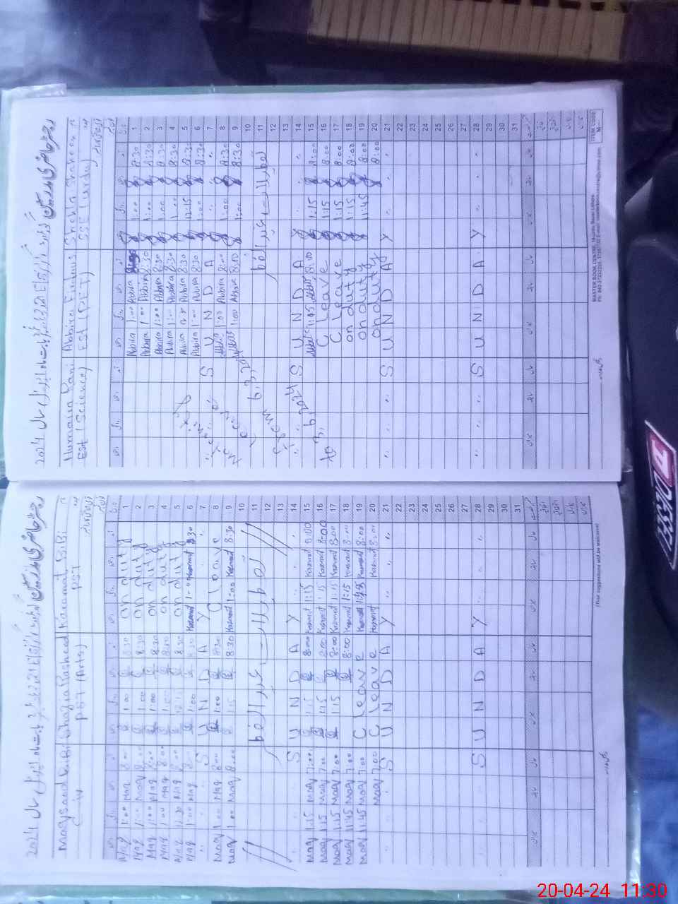 | Leave | Duty | Absent | Maternity | Medical | Ex- Pak |