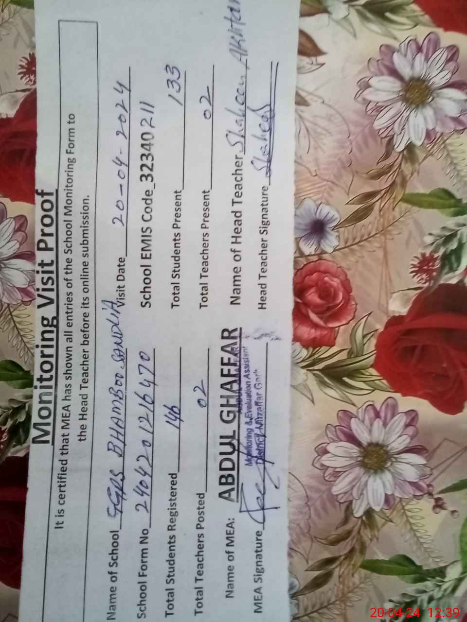 | EMIS Code: 32340211 | Name of School: GGPS BHAMBOO SANDILLA | |||