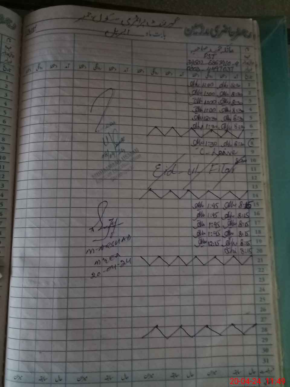| Name: Mu**** Hu**** Designation: (School Headmaster's/Headmistress's) PST Phone/Cell Number: 03**** |