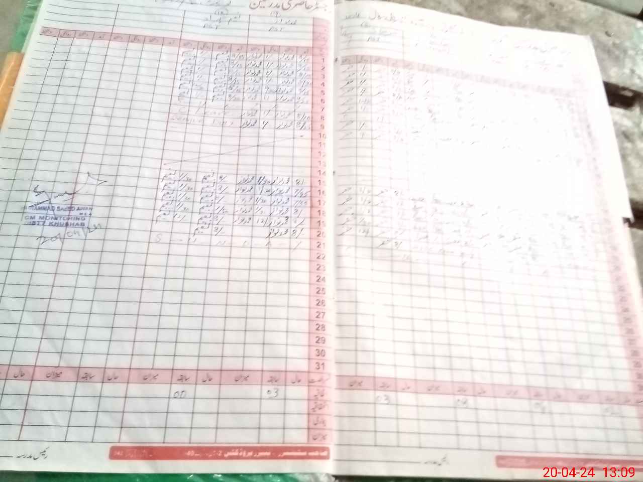 | CNIC | Full Name | Designation | R/C | Absence During Last Calender Month |