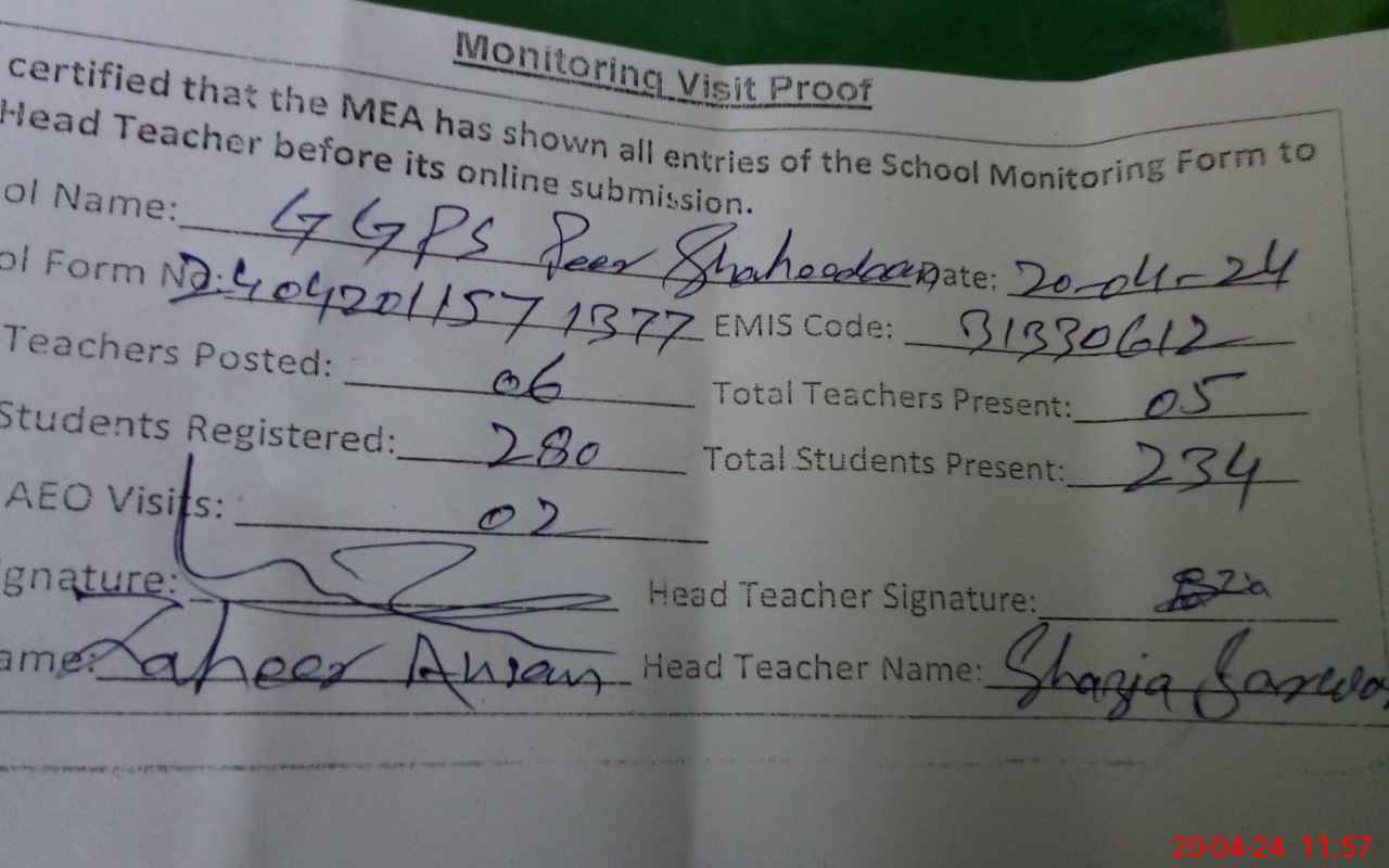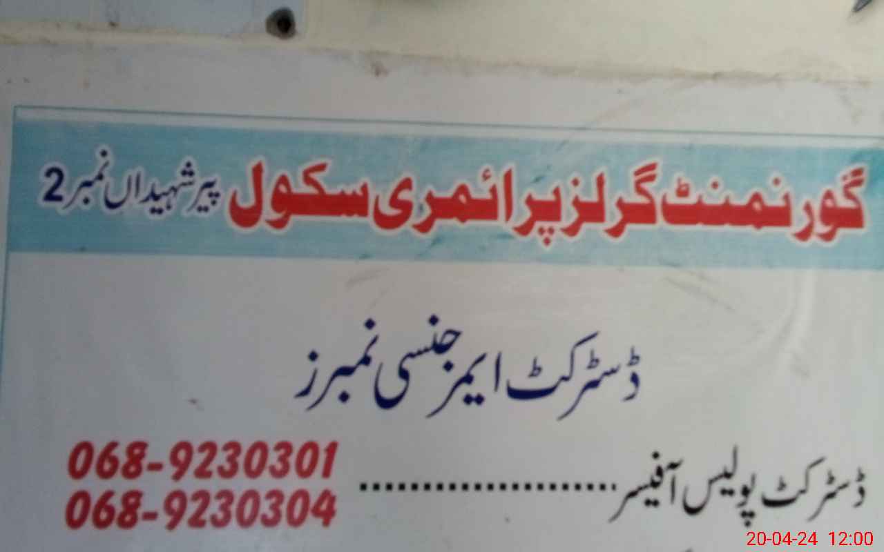 | EMIS Code: 31330612 | Name of School: GGPS PIR SHAHIDAN NO.2 | |||