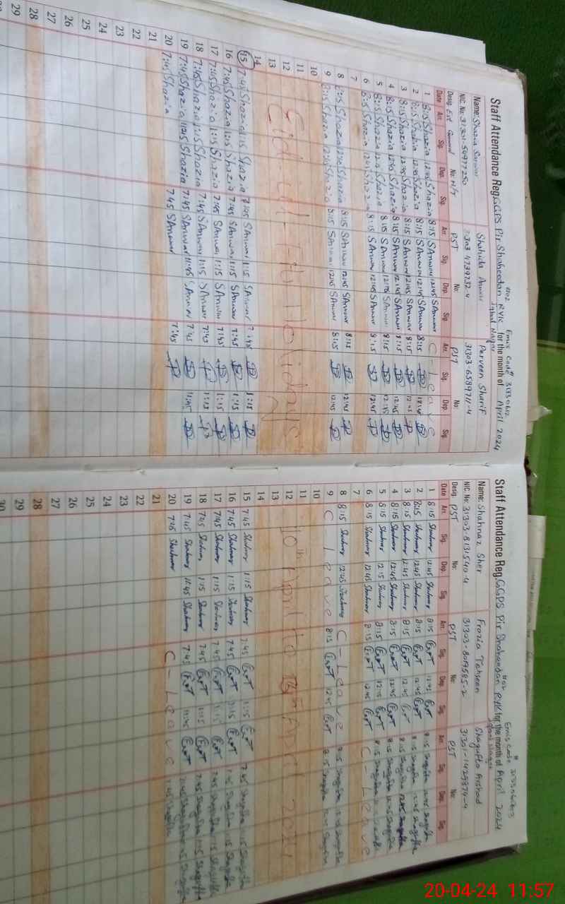| CNIC | Full Name | Designation | R/C | Absence During Last Calender Month |