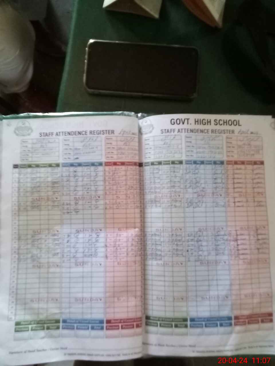 | CNIC | Full Name | Designation | R/C | Absence During Last Calender Month |