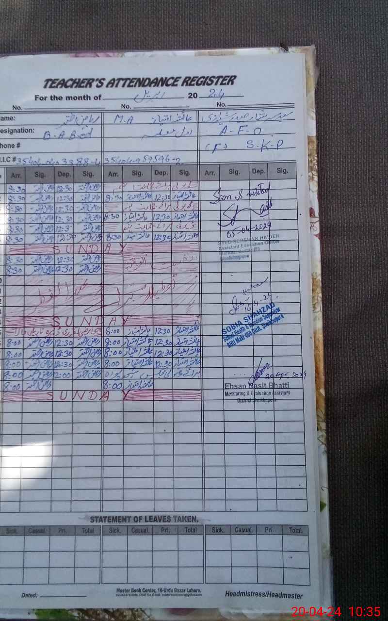 | Name: Ay**** Im**** Designation: (School Headmaster's/Headmistress's) PST Phone/Cell Number: 03**** |