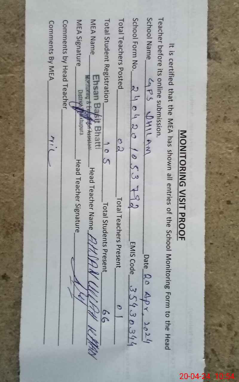 | EMIS Code: 35430344 | Name of School: GPS DHILLAM | |||
