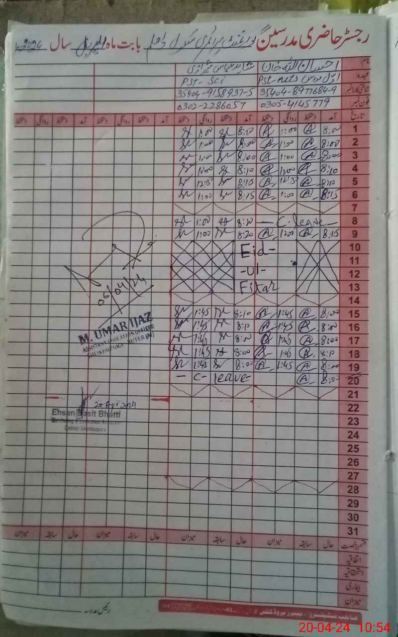 | Name: EH**** UL**** Designation: (School Headmaster's/Headmistress's) PST Phone/Cell Number: 03**** |