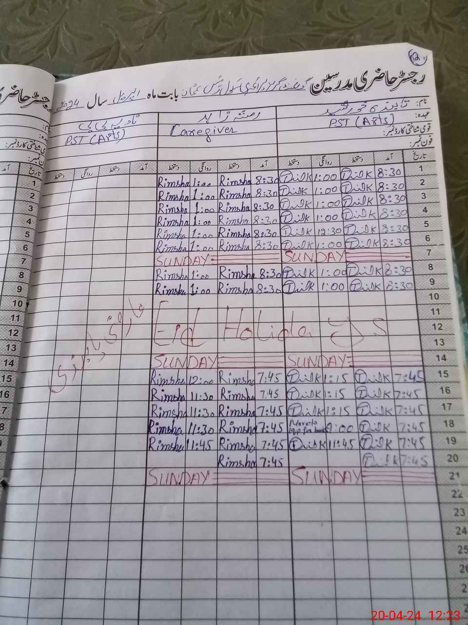| CNIC | Full Name | Designation | R/C | Absence During Last Calender Month |