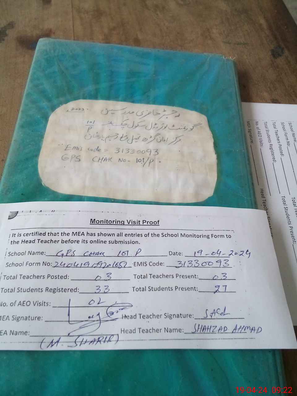 | EMIS Code: 31330093 | Name of School: GPS CHAK 101/P | |||