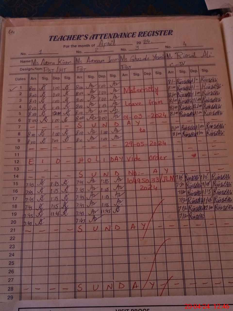 | 37**** | Gh**** Ya**** | PST | Regular | 0 | 0 | 0 | 0 | 0 | 0 | 0 | 0 | 0 | Maternity |