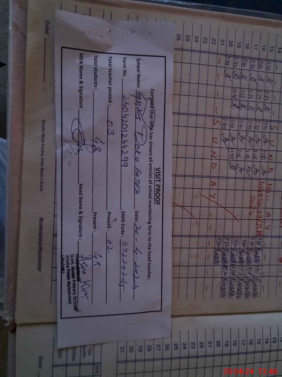 | EMIS Code: 37220245 | Name of School: GGPS DHOK FATEH MUHAMMAD | |||