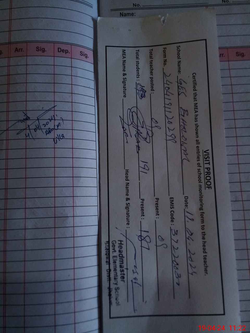 | Certified that this School was Inspected by the Undersigned MEA/DMO Today and the Information Stated Above is as Per Record. | |||||