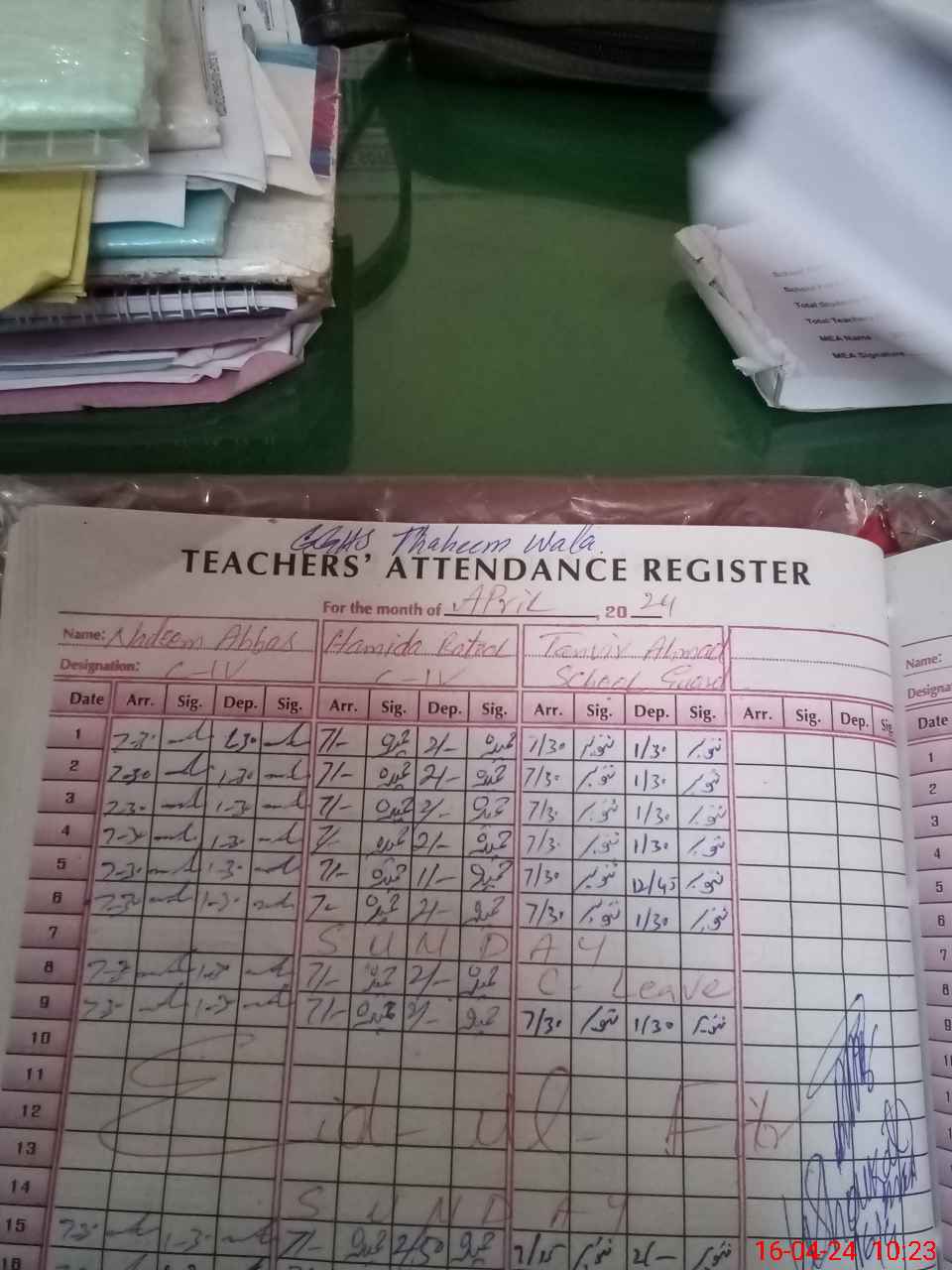 | CNIC | Full Name | Designation | R/C | Absence During Last Calender Month |