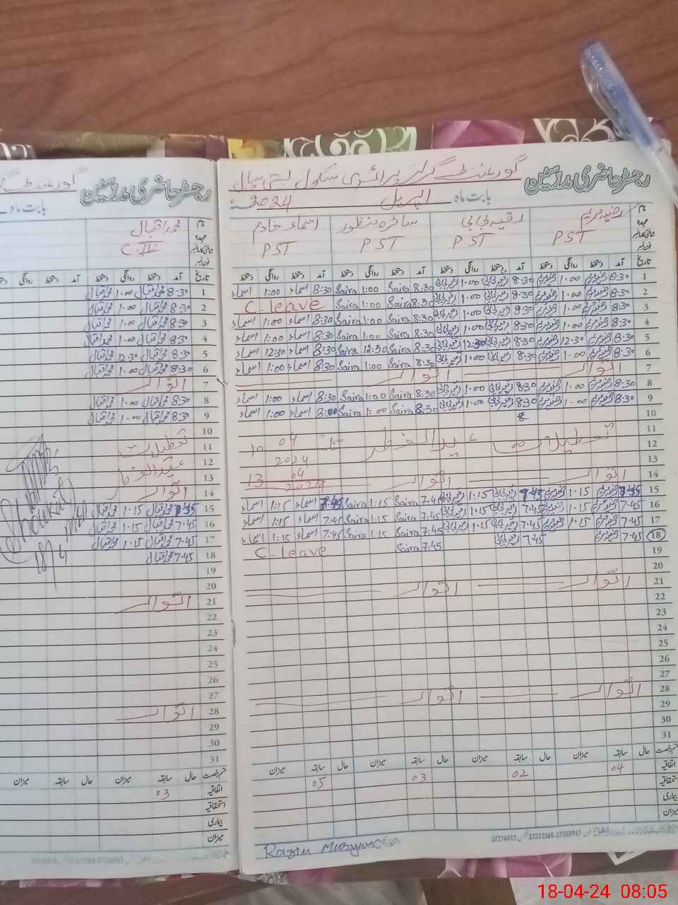 | Name: RA**** MA**** Designation: (School Headmaster's/Headmistress's) PST Phone/Cell Number: 03**** |