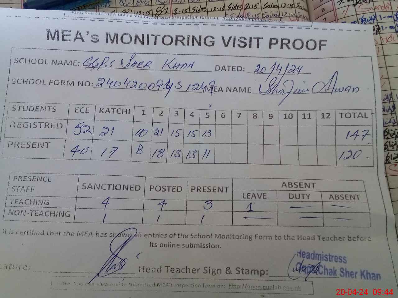 | EMIS Code: 36410345 | Name of School: GGPS SHER KHAN, KABIRWALA | |||