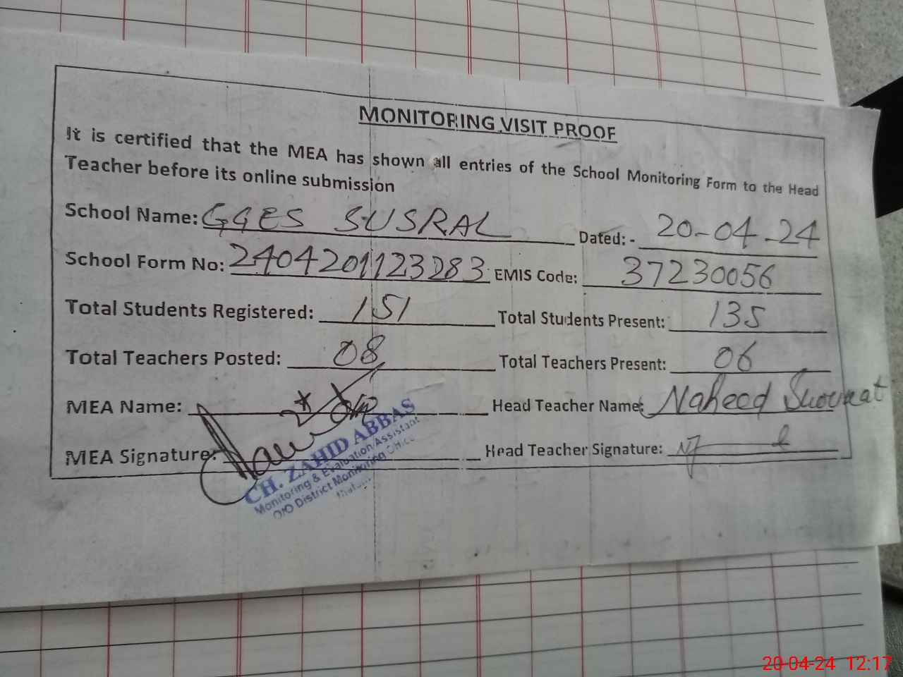 | EMIS Code: 37230056 | Name of School: GGES SUSRAL | |||