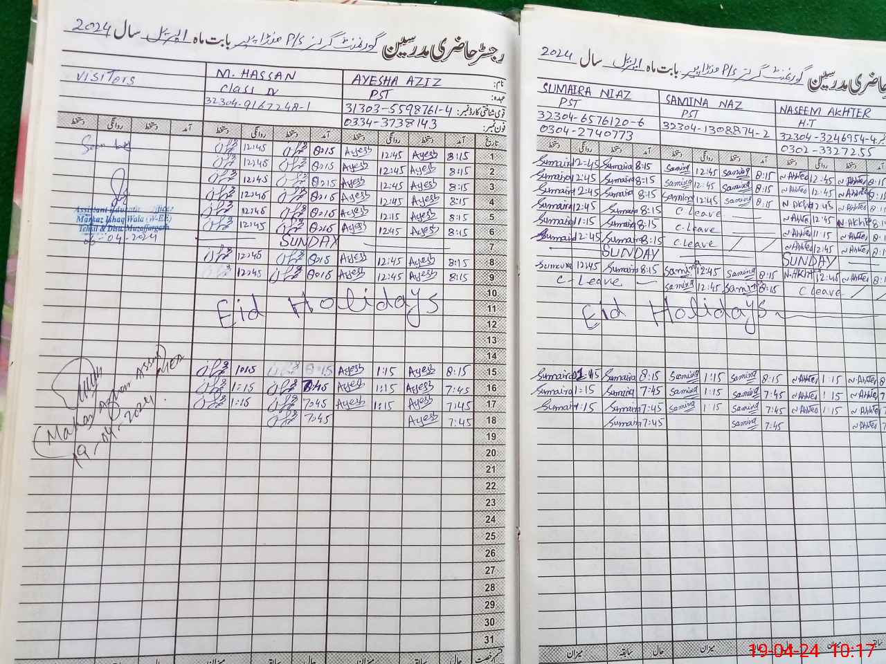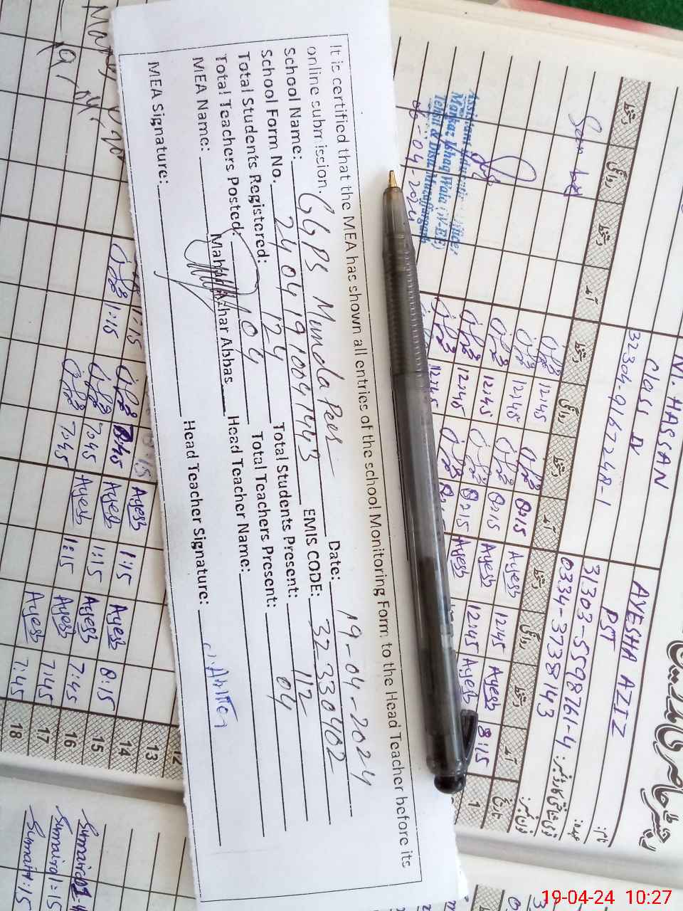 | Name: NA**** AK**** Designation: (School Headmaster's/Headmistress's) PST/PTC/JV Phone/Cell Number: 03**** |