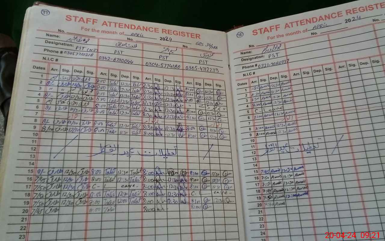 | CNIC | Full Name | Designation | R/C | Absence During Last Calender Month |