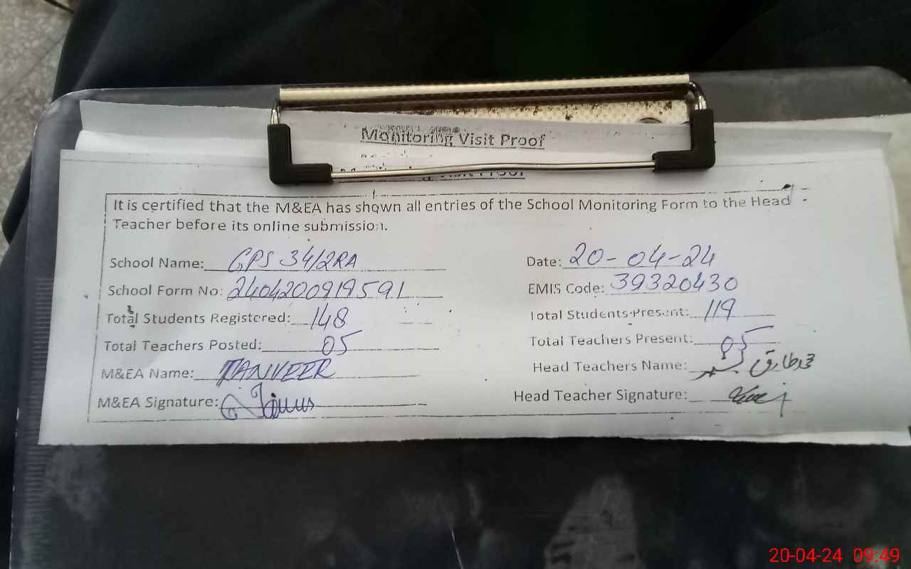 | EMIS Code: 39320430 | Name of School: GPS CHAK NO. 34/ 2-RA | |||