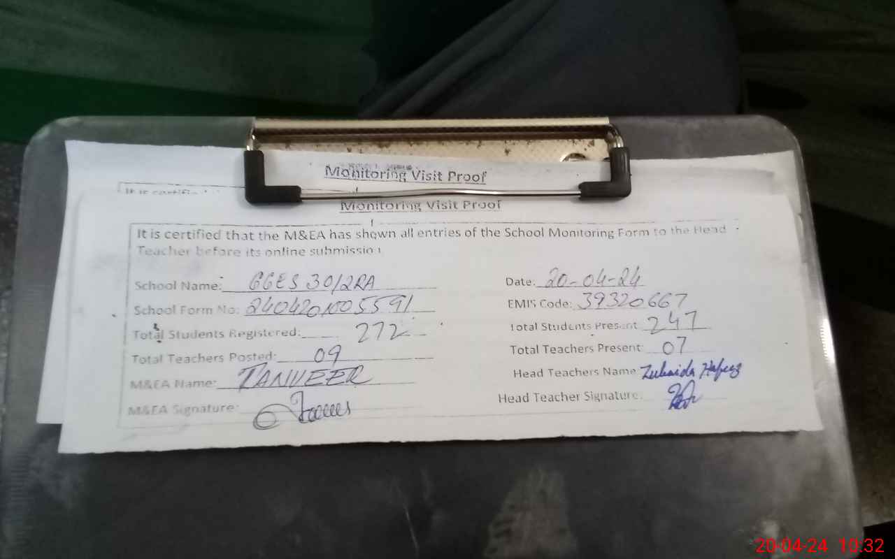 | EMIS Code: 39320667 | Name of School: GGES CHAK NO.30/2-RA | |||
