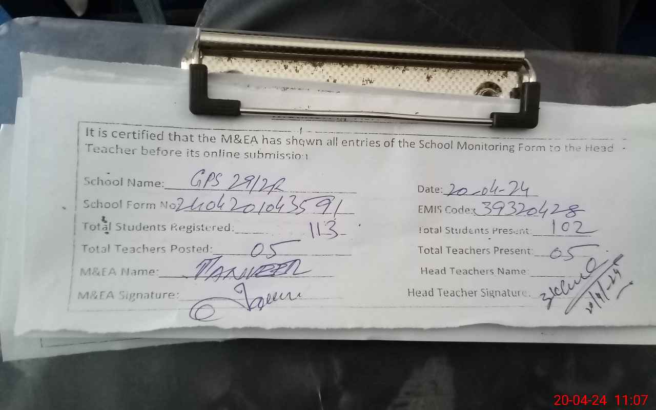 | EMIS Code: 39320428 | Name of School: GPS CHAK NO. 29/2-R | |||