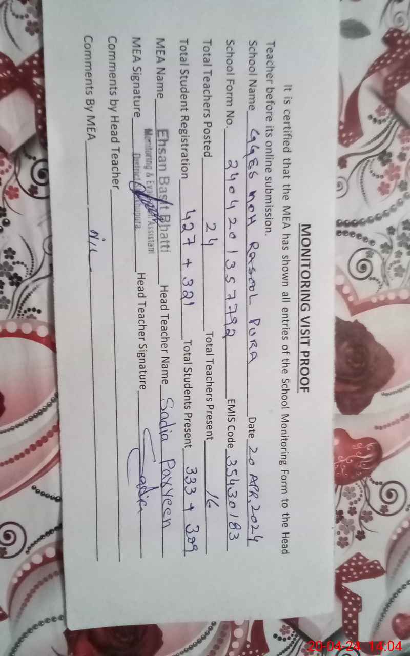| EMIS Code: 35430183 | Name of School: GGES MOHALLAH RASOOL PURA | |||