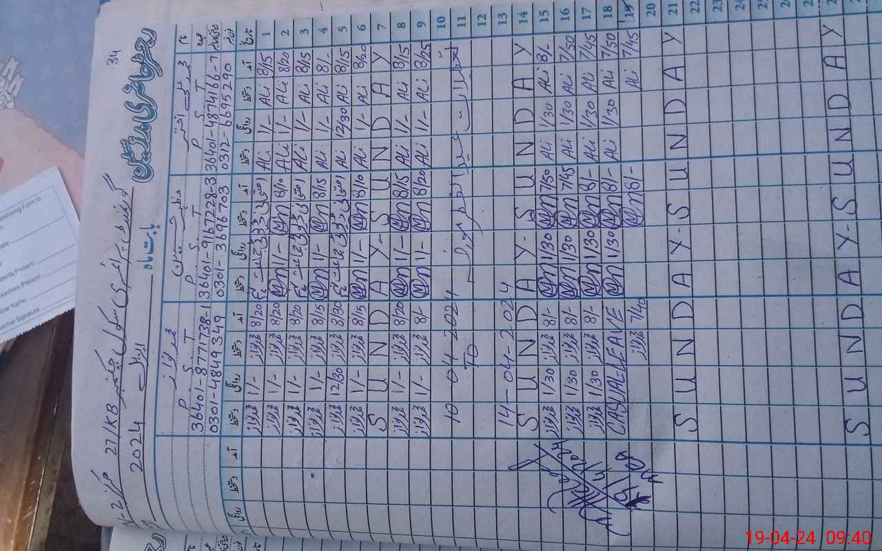 | Name: MU**** AL**** AK**** Designation: (School Headmaster's/Headmistress's) PST Phone/Cell Number: 03**** |