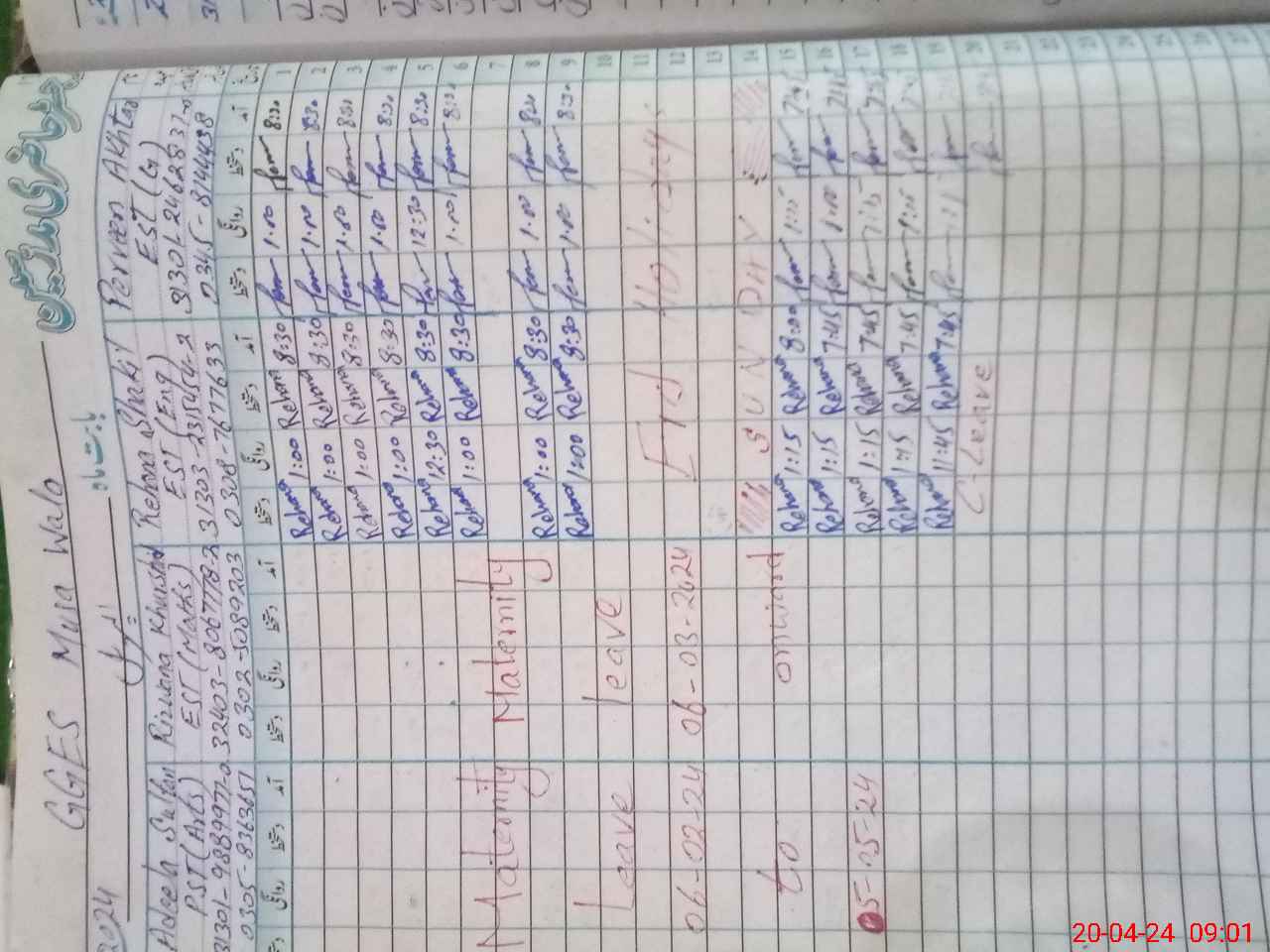| 32**** | Ri**** Kh**** | Regular | 26 | 0 | 0 | 26 | 0 | 0 | 0 | 0 | 0 | Maternity | |