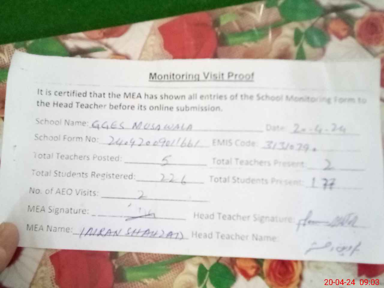 | EMIS Code: 31310790 | Name of School: GGES MUSA WALA | |||