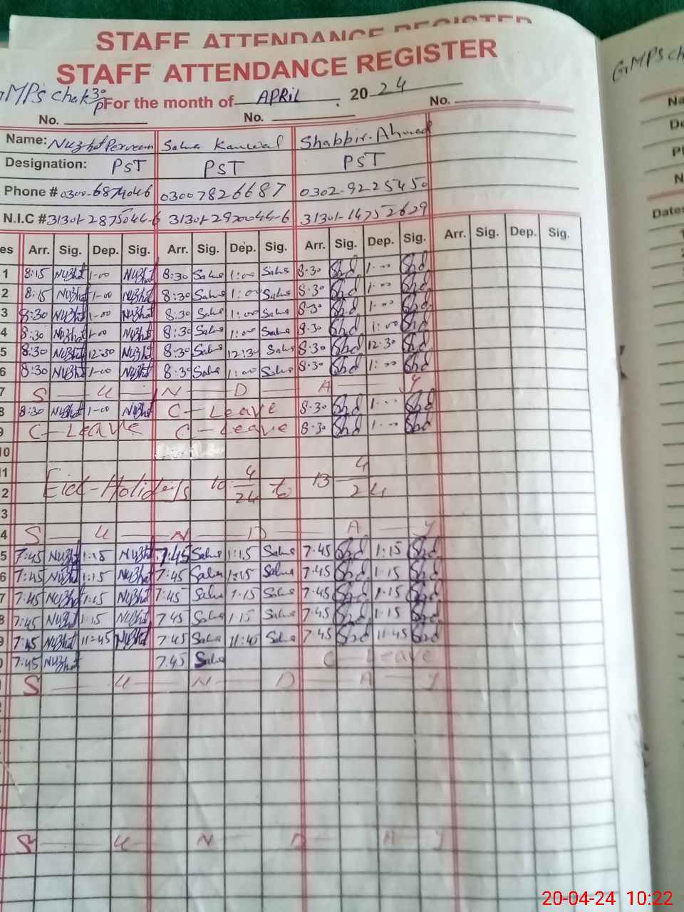 | Name: Nu**** Pe**** Designation: (School Headmaster's/Headmistress's) PST Phone/Cell Number: 03**** |