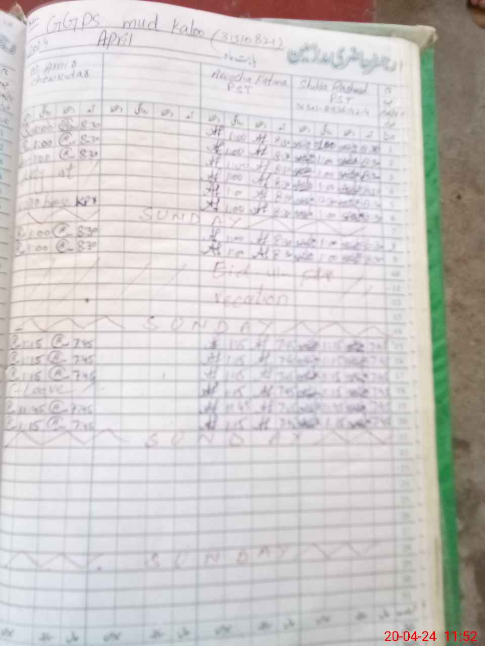 | Name: Sh**** Ra**** Designation: (School Headmaster's/Headmistress's) PST Phone/Cell Number: 03**** |