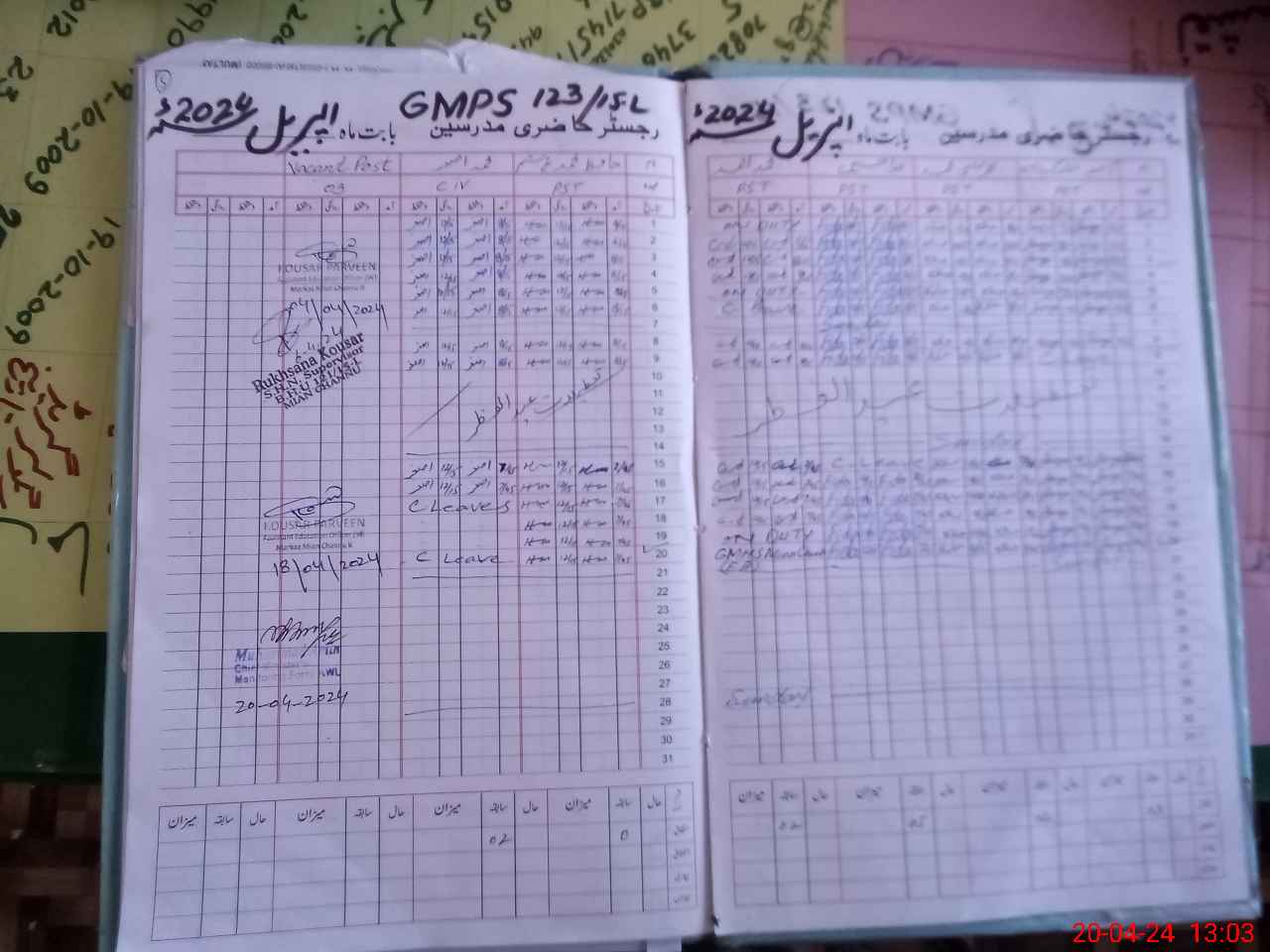 | CNIC | Full Name | Designation | R/C | Absence During Last Calender Month |