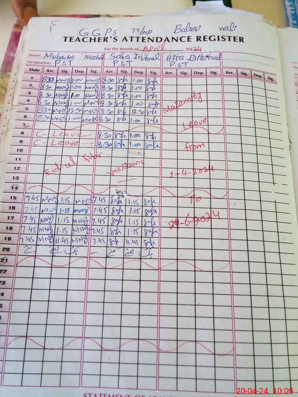 | Name: MU**** NU**** Designation: (School Headmaster's/Headmistress's) PST Phone/Cell Number: 03**** |